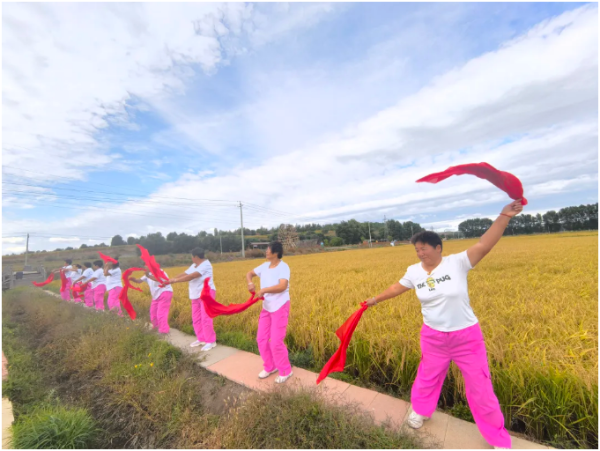 人们身着彩衣,跳起热情的舞蹈,欢乐祥和的氛围洋溢出新时代农民群众物质生活和精神生活双丰收的喜悦心情。(摄影:刘文静)