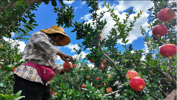 电商平台的进入也增加了当地就业岗位,包括采摘、分拣、打包、物流运输等。一到销售旺季,来自云南、广西、贵州等省区的数千人在会理务工,餐饮、住宿等行业消费也增量明显。2023年,会理市石榴产值63.34亿元,拉动二、三产业产值在20亿元以上。