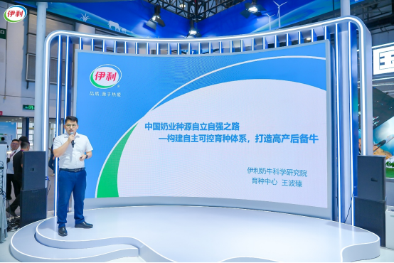 当镜头转向育种领域,伊利奶牛科学研究院育种中心负责人王波臻主任的演讲直指产业核心痛点:“国内奶牛种质资源相对薄弱、遗传改良滞后,导致单产低、成本高,成为制约奶业高质量发展的瓶颈。”据统计,我国90%以上的优质种牛遗传物质依赖进口。王波臻强调:“只有打破这种依赖,才能把14亿国人的‘奶瓶子’牢牢端在自己手中。”一年开好头、三年打基础、五年见成效、十年实现重大突破。面对挑战,伊利勇担龙头责任,于2019年率先启动 “良种牛品质升级工程”,以基因组检测、胚胎移植等尖端技术为核心,系统性打造国产“牛芯片”。通过“评估-分群-选配-扩繁”全链条解决方案,帮助牧场培育兼具健康、高产、高繁、抗病、长寿、低碳“六优”特质的核心牛群,加速国产核心种群建设。