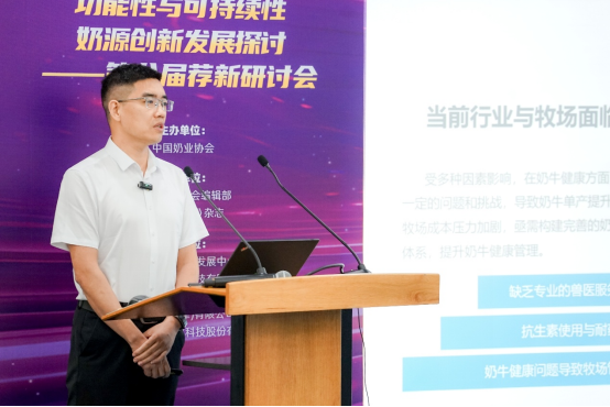 在主会场赋能分享的同时,中国奶业大会专题研讨会上同样迸发着智慧火花。伊利奶牛科学研究院培训中心负责人张俊杰博士以《构建奶牛保健服务体系,筑牢奶牛健康和福利》为题,系统展示奶牛乳房健康关键技术。“健康的奶牛,是牧场效益的基石。”张俊杰在报告中指出,提升奶牛健康管理水平,减少治疗投入、降低生物资产损失和牛奶品质保障,是降低牧场经营成本的关键途径。伊利多年来深入贯彻奶牛生理、环境、健康、行为、心理五大福利要素,创新构建了“奶牛全生命周期健康福利养殖”新模式,帮助牧场实现健康养殖、高效运营与产业可持续提升,以人与自然和谐共生的中国式现代化奶牛福利养殖技术,引领产业转型升级。