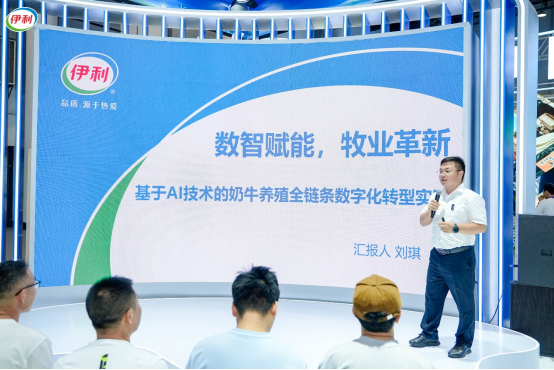 而本土创新的数智化养殖新技术,更是让与会者眼前一亮。伊利奶牛科学研究院畜牧主任工程师刘琪完整披露了自主开发的“伊起牛·智慧牧业生态系统”实现了AI技术的首次跨越:在系统大屏上,宁夏春田牧场每头奶牛数字化档案一应俱全,当输入生产中的养殖技术难题后,系统的AI智能体都会立即给出最优解决方案,可谓“奶牛养殖业DeepSeek”。这正是因为伊利以十多年积累的超1000万只奶牛数据和500亿多条生产记录的数百亿级数据资产为基础,通过部署“YILI-AI”私有化大语言模型AI智能体,开辟了数智化破局新路径。并依托智能视觉系统、大语言模型、智能算法与自主决策三大核心技术路径,伊利构建了覆盖奶牛养殖技术与管理运营全领域的智慧养殖体系。在AI技术的加持下,驱动牧场奶牛单产提升3.62公斤、综合管理成本降低0.32元。同步落地的原奶智能物流平台通过“双中台”赋能,优化运输里程9.3%,年降本超千万元,全程保障乳品新鲜度。这一从经验驱动向数据驱动转型、从被动响应向主动预警升级、从人工分析向智能决策跨越的转型实践,不仅为行业提供可复制的智能化范本,更以“增效降本”双目标重构奶业竞争力,引领中国奶业迈入AI智慧养殖新时代。