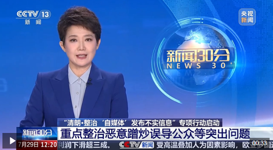 中央网信办今日发布通知,决定自7月24日起,在全国范围内启动为期2个月的“清朗·整治‘自媒体’发布不实信息”专项行动。 集中整治“自媒体”发布不实信息乱象,从严打击恶意蹭炒误导公众、多种手段歪曲事实、不做标注以假乱真、专业领域信息不实等突出问题,督导网站平台建立健全技术识别发现、信息来源标注和专业资质认证等功能机制,进一步规范“自媒体”运营行为,持续营造清朗网络空间。