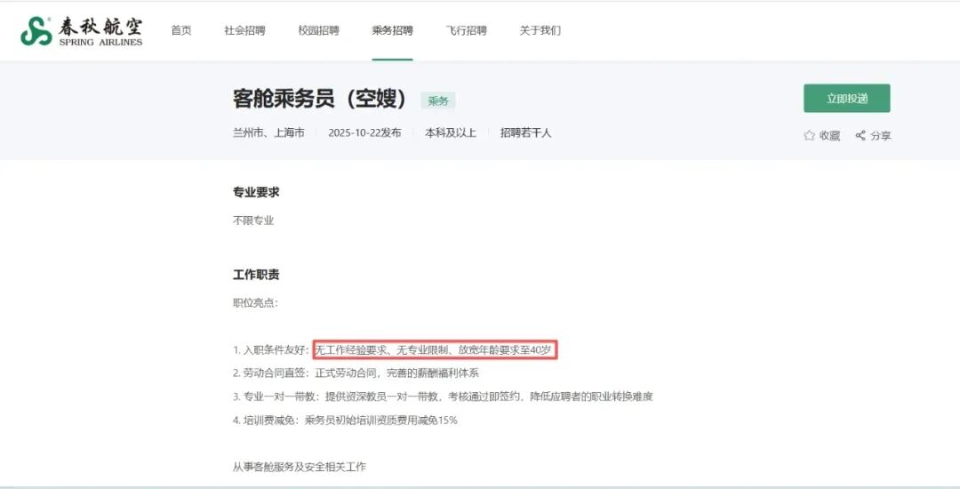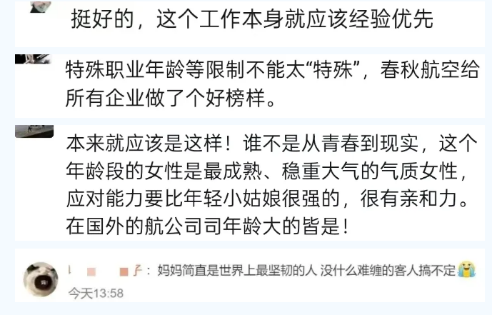 更值得关注的是,此举背后的“破冰”意义。春秋航空以40岁年龄上限、已婚已育为条件,某种程度上打破了行业固有的“青春滤镜”,也传递出服务价值不被年龄框定的积极信号。