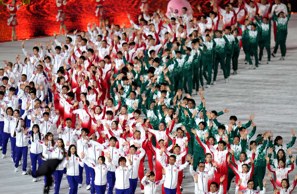 11月9日,广东省体育代表团、香港特别行政区体育代表团、澳门特别行政区体育代表团在入场仪式上共同入场。