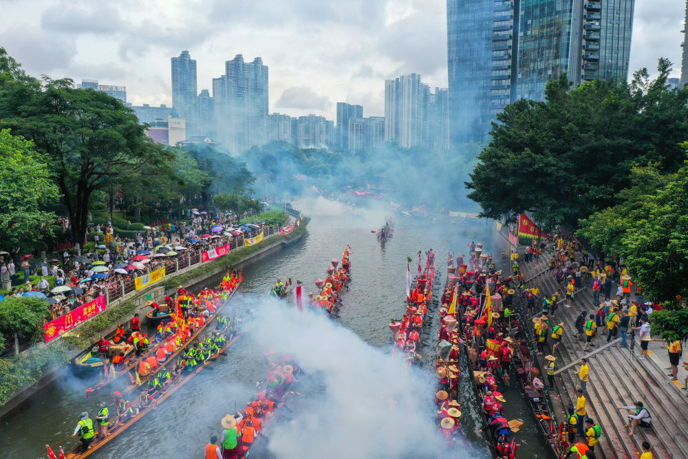 2024年6月10日,四里八乡的龙舟汇聚在猎德涌参加“龙船景”。