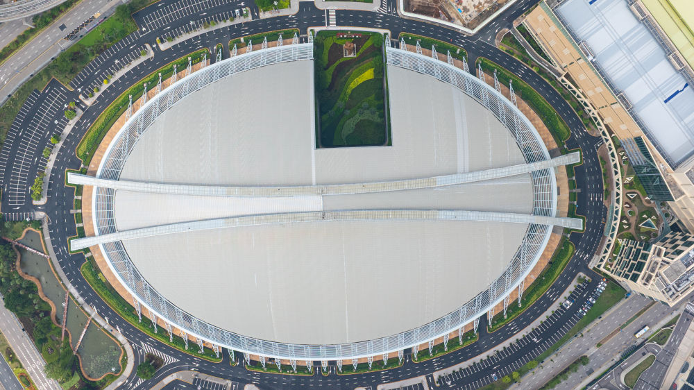 这是11月6日拍摄的位于香港启德体育园内的启德主场馆。主场馆利用香港特区政府提供的区域冷冻系统提供冷气,实现高效节能运行。