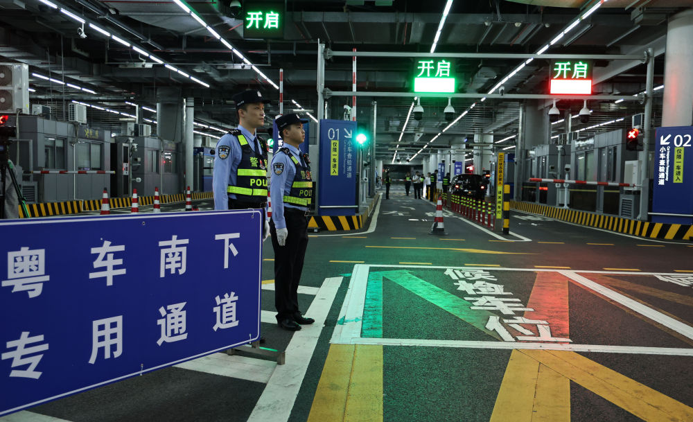 11月14日深夜拍摄的港珠澳大桥珠海公路口岸“粤车南下”专用通道。