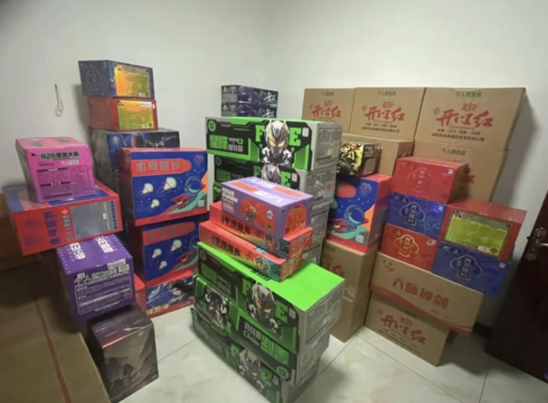 2025年12月24日,安徽淮南,民警发现一住户李某在微信朋友圈招揽销售烟花爆竹,立即进行核查,并在其住所内查获“加特林”等烟花爆竹共计135箱。目前,李某因非法储存危险物质被依法行政拘留。