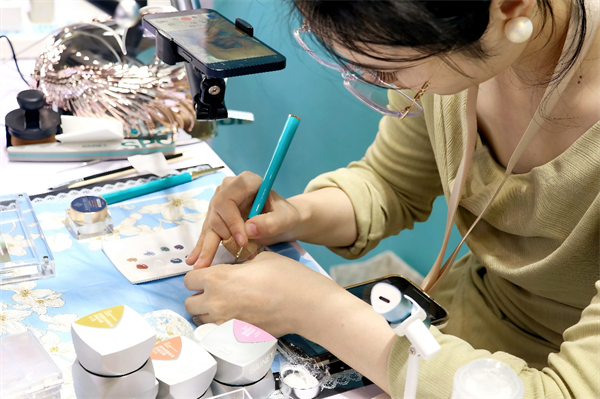 员工录制甲油胶彩绘演示视频