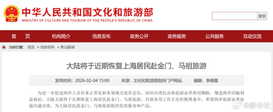 为进一步促进两岸人员往来正常化和各领域交流常态化,回应台湾民众和旅游业界热切期盼,增进两岸同胞利益福祉,大陆方面将于近期恢复上海居民赴金门、马祖旅游。目前各项工作正在积极筹备中,希望两岸旅游业界加强沟通对接,为大陆居民赴金门、马祖旅游提供优质服务和产品。