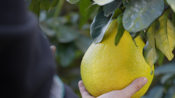 ▲梅州柚子由“论斤贱卖”升级为“按个精品”。(李孟麟 摄)