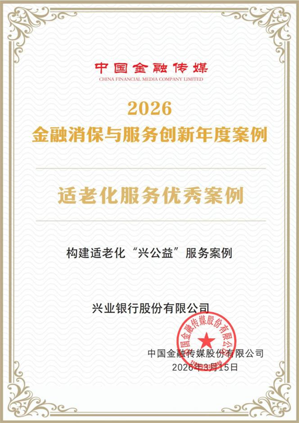 近日,由国家金融监督管理总局主管的中国金融传媒公布了“2026金融消保与服务创新优秀案例”评选结果。兴业银行有两项案例从185家金融机构近400项案例中脱颖而出,成功入选。