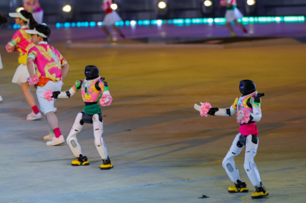 4月22日晚, 第六届亚洲沙滩运动会开幕式在三亚亚沙公园举行。图为机器人在开幕式上表演 。(第六届亚洲沙滩运动会组委会 供图)