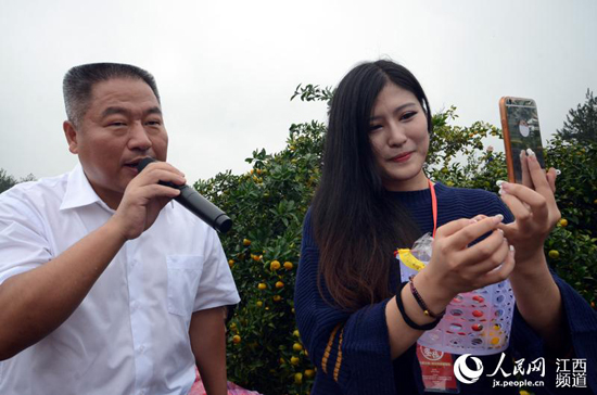 这是10月25日江西南丰县“首届网络蜜桔节”线下活动的一个场景。