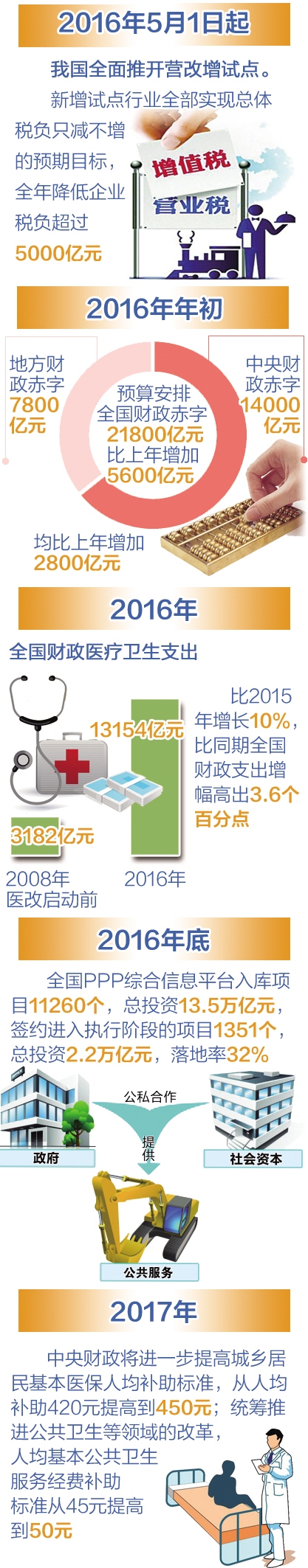 财政部有关负责人还介绍,2016年财政有力支持基本民生托底,促进社会事业发展。比如,落实更加积极的就业政策,鼓励企业吸纳就业困难人员;促进教育均衡发展,统一城乡义务教育学校生均公用经费基准定额,免除普通高中建档立卡等家庭经济困难学生学杂费,分类推进中等职业教育免除学杂费,等等。
