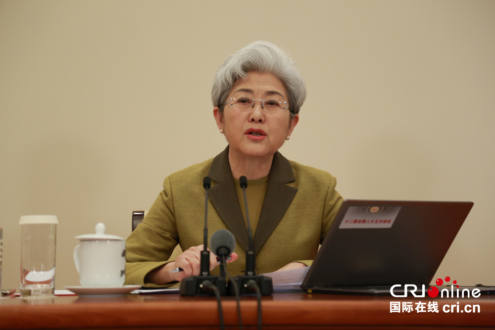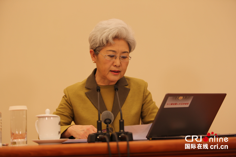 大会发言人傅莹介绍情况。摄影:杜军帅