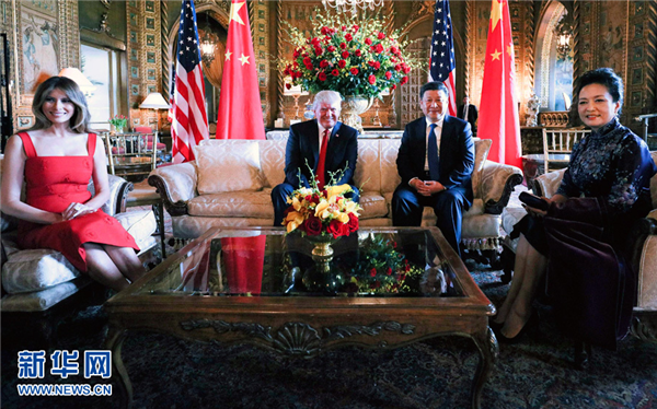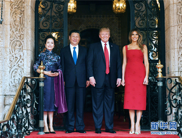 当地时间4月6日,国家主席习近平在美国佛罗里达州海湖庄园同美国总统特朗普举行中美元首会晤。这是习近平和夫人彭丽媛同特朗普和夫人梅拉尼娅合影留念。新华社记者 饶爱民 摄