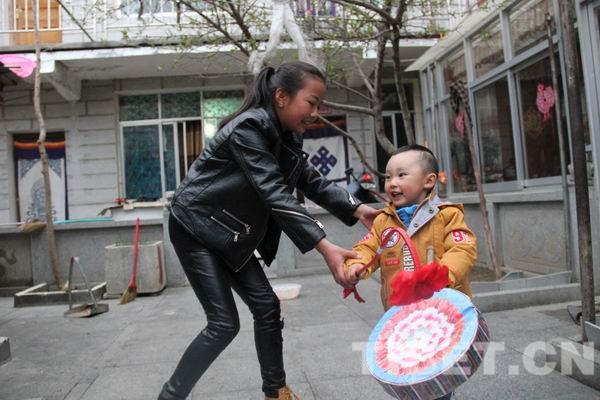 △喜欢热巴舞的姐姐唐晓雯教弟弟跳热巴