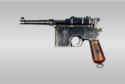 1956年3月,中国人民解放军政治学院举行授旗和开学典礼仪式。不久,人们就在学院的军史陈列室中见到了一把漂亮的驳壳枪。这是德国造的7.63毫米口径的毛瑟警用型手枪,枪号为592032,弹匣可容弹10发。这种枪在第一次世界大战后开始批量进入中国,仅20世纪二三十年代即有数十万支装备于中国各派军队中。但数十万支枪中的这一把却不同寻常。1959年中国人民革命军事博物馆成立后,这把枪即被移交过来,做为一级文物珍藏并展出。