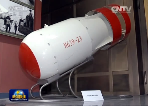 1967年6月17日上午,一架小型战机在新疆罗布泊上空投下降落伞,当降落伞下降至距地面约3000米高度时,伞包爆炸,伴随着巨大响声,空中升腾起蘑菇云——中国第一颗氢弹爆炸试验成功!这是我国1966年12月28日在102米高的铁塔上成功地进行了首次氢弹原理试验之后仅5个多月进行的一次用飞机空投的氢弹空中爆炸试验。实验的成功标志着我国核武器发展方面的又一次飞跃,我国核武器的发展进入了新阶段。氢弹又称“热核武器”,它是一种利用氢元素原子核在高温下聚变反应于瞬间放出巨大能量起杀伤破坏作用武器,就其原理来说,它应该叫“三相弹”,即裂变引发聚变,聚变释放出的中子诱发出更剧烈的裂变。氢弹爆炸时,作为引爆装置的原子弹首先爆炸,产生数千万度高温,促使氘氚等轻核急剧聚变,放出巨大能量,形成更猛烈的爆炸。