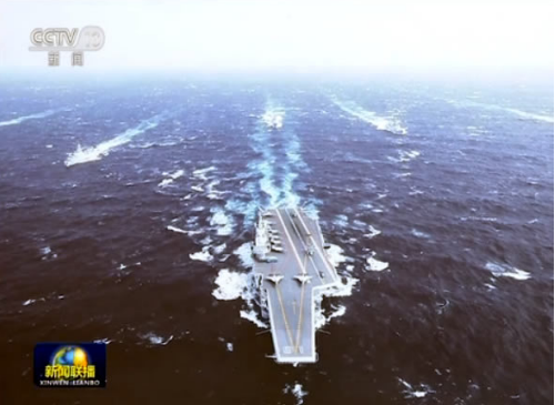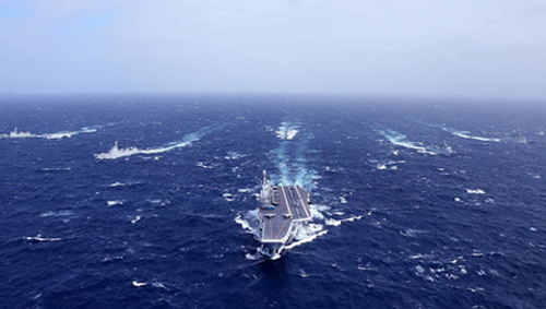 “辽宁”号航空母舰赴南海海域执行训练任务时的照片