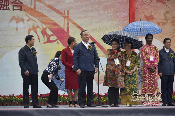 甘肃省政协副主席栗震亚出席开幕式并宣布第九届陇南乞巧女儿节开幕。中共陇南市委书记孙雪涛,中国民间文艺家协会副秘书长周燕屏,全国妇联联络部部长牟虹,中国作家协会副主席吉狄马加依次致辞,中共陇南市委副书记、代市长崔景瑜主持开幕式。