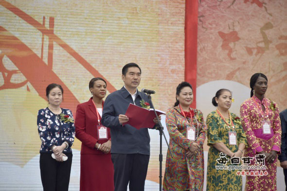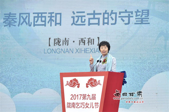 甘肃省政协副主席栗震亚宣布第九届陇南乞巧女儿节开幕。