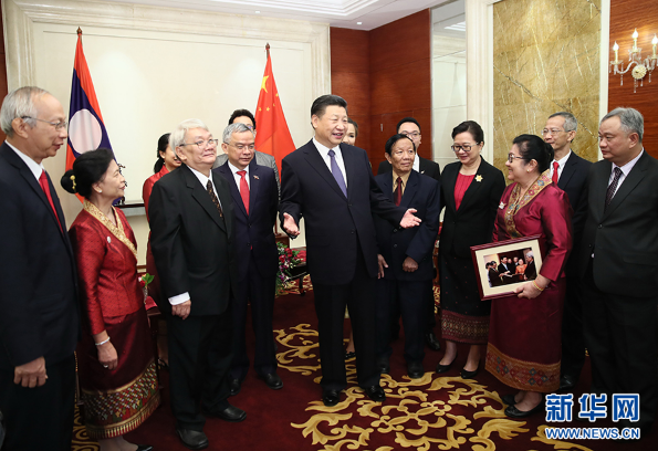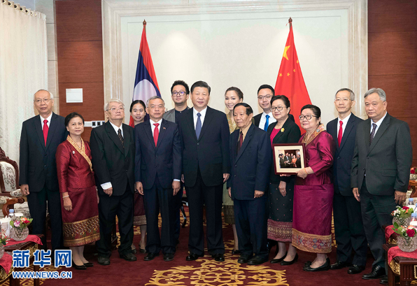 习近平表示,时隔7年再次同老同学、老朋友们相聚,看到你们身体健康、家庭幸福,我感到格外高兴。奔舍那家族是中国的好朋友、老朋友。这几年,大家在不同岗位上努力为两国友好事业作贡献。希望你们继续投身中老友好事业,培养子孙做两国友好的接班人,让两国友谊世代相传。