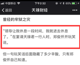 1、声明中提到“郑俊怀对‘潘刚失联谣言’不知情”,并且委托律师杨航远在接受澎湃新闻采访时表示,郑俊怀与之前因涉嫌制造谣言而被抓的几名前媒体人“都不认识,没有任何交往”。但是以下犯罪嫌疑人刘某某(天禄君)2018年1月29日发表的文章中,详细描述了他和郑俊怀多次见面、吃饭聊天的细节。郑俊怀先生,你的谎言被天禄君戳穿了。你和天禄君不仅仅认识,而且关系密切。