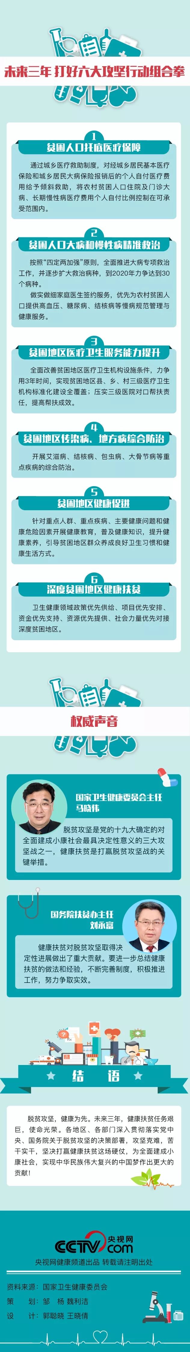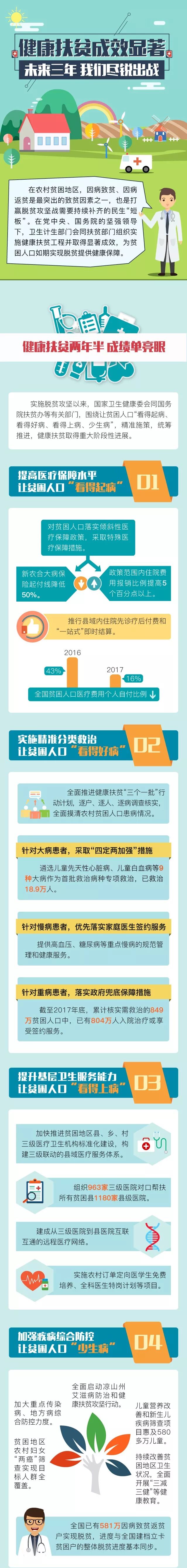 在农村贫困地区,因病致贫、因病返贫是最突出的致贫因素之一,也是打赢脱贫攻坚战需要持续补齐的民生“短板”。在党中央、国务院的坚强领导下,国家卫生健康委会同国务院扶贫办等有关部门,围绕让贫困人口“看得起病、看得好病、看得上病、少生病”,精准施策,统筹推进,健康扶贫取得重大阶段性进展。未来三年,我国将实施健康扶贫六大攻坚行动,为贫困人口如期实现脱贫提供健康保障。