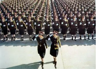 国庆三十五周年阅兵上穿85式军服的女兵方队。