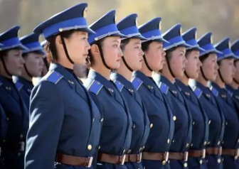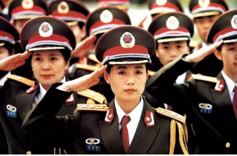 刚刚装备92式文职干部服装的女文职干部接受检阅。