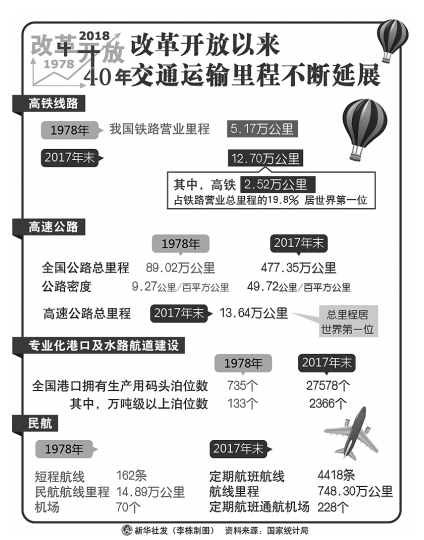 从“用双脚丈量”到乘坐时速350公里的高铁,从坐飞机“想都不敢想”到务工者春运包机回家过年……改革开放40年来,居民出行方式发生巨大变化,交通运输业发展成绩令人惊叹,创造了举世瞩目的“中国速度”和“中国模式”。