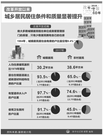 改革开放40年,我国城乡居民从吃穿住用的品质,到能够享受的医疗教育服务水平,都发生着重大的变化,生活质量不断提升,食品支出比重明显下降,服装时尚化,耐用消费品升级换代。移动电话、计算机、汽车走入寻常百姓家。2017年,城镇居民平均每百户拥有移动电话235部,计算机80.8台,家用汽车37.5辆;农村居民平均每百户拥有移动电话246部,计算机29.2台,家用汽车19.3辆。