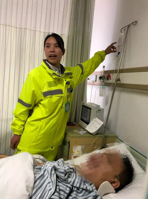 “别怕,我是急救护士,我来帮你,忍一下……”王露一边安慰,一边手脚麻利地开始为伤员包扎伤口、接监护仪、开通静脉通路。