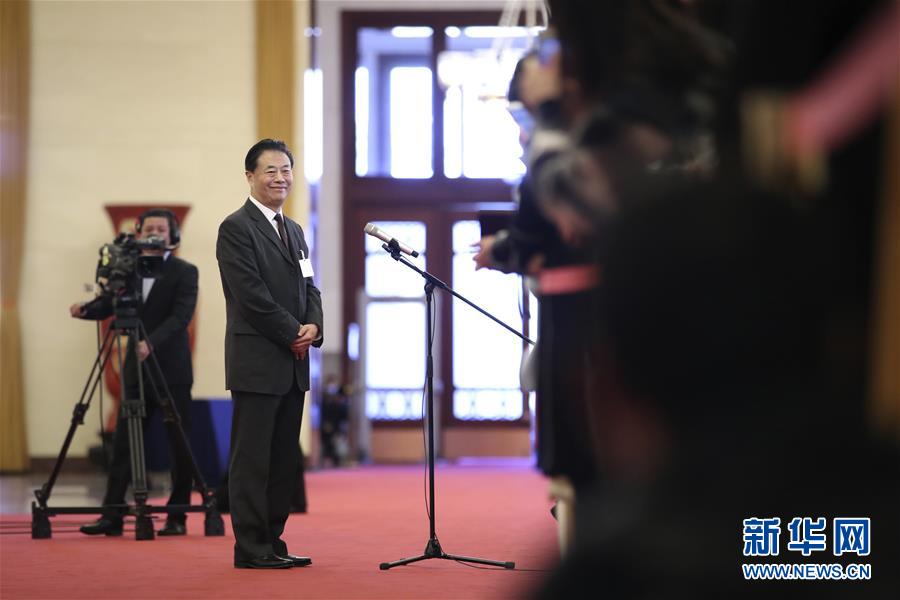 3月12日,十三届全国人大二次会议在北京人民大会堂举行第三次全体会议。这是水利部部长鄂竟平在“部长通道”接受采访。 新华社记者 金立旺 摄