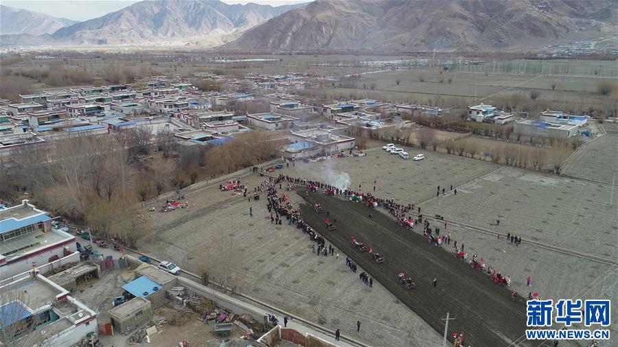 3月16日,山南市乃东区克松社区居民在开耕仪式上。新华社记者 李鑫 摄