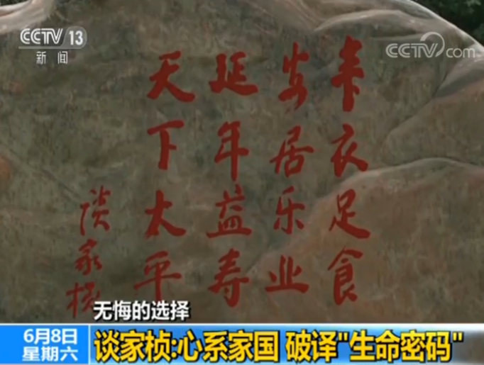 丰衣足食,安居乐业,延年益寿,天下太平,谈家桢亲笔题写的这十六个字,至今仍矗立在复旦大学生命科学院楼前,这是他选择遗传学研究一生追求的目标。用生物学研究成果推进农业发展、解决环境问题、进行医药开发、制止生物武器,他把生命科学工作者的责任凝结在这16字当中,谆谆寄语至今仍激励着一代又一代学子。