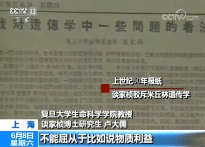 在复旦大学档案馆,这些珍贵的史料,纪录了谈家桢人生中的又一个重大选择。新中国成立初期,米丘林学说在国内盛行,它强调对育种起决定影响的是外部环境而非内因,形成了学术上的一边倒。时任复旦大学生物系主任的谈家桢,却深信科学容不得半点虚假,宁可三年停课编教材,也绝不传播谬误。在当时青岛遗传学大会上,谈家桢不惧压力,坚定地捍卫了科学的真理。