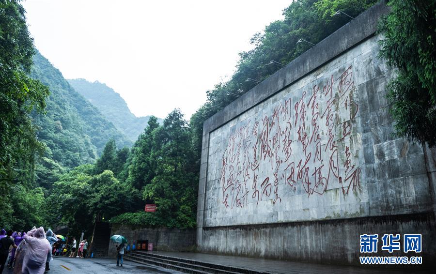 游客从刻有《忆秦娥·娄山关》的石壁前经过(7月4日摄)。新华社记者 陶亮 摄
