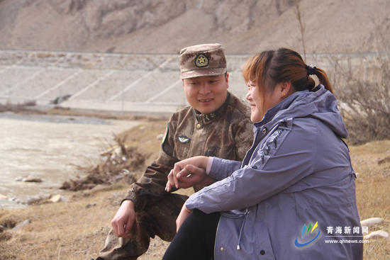 图为郝文静和崔建广正在离兵站不远的昆仑河边聊天话家常。(摄于2019年4月23日)