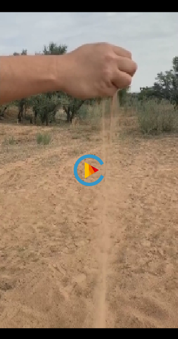 △即便前一天刚下过雨,湿度增加了沙子的粘性和重量,也还是能看出沙粒之细小,很容易被风扬起。(央视记者沈忱拍摄)