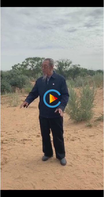 △六老汉之一、第一代治沙人,今年78岁的张润元老人说,上世纪七十年代,我们所站的地方都是尖尖的沙丘,经过二十多年的植树,起风后沙子被吹到了“树堂子”里,起不了风沙,地面也变得平整了。(央视记者沈忱拍摄)
