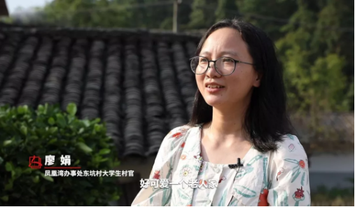 △凤凰湾办事处东坑村大学生村官廖娟接受采访。(视频截图)