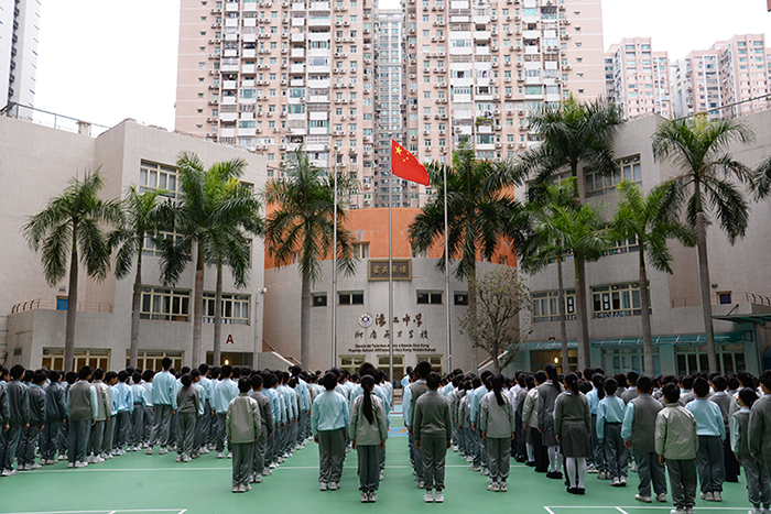 △12月16日,濠江中学附属英才学校举行升旗仪式。现在,澳门全部大中小学都已经实现了升挂国旗,并且每周都会举行升国旗仪式。(摄影:央视新闻记者 吴璇)
