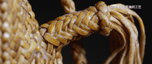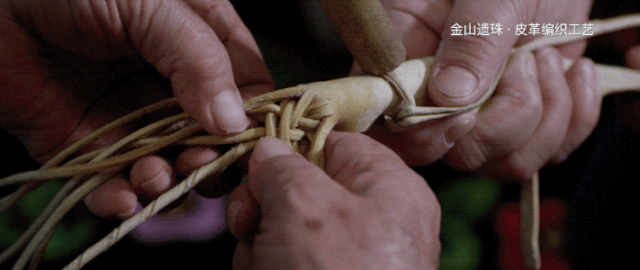 编织环节,一般采用交叉编织、拼镶、排列穿插等编织手法。其中最为常用的 "十”字编、“人”字编、绞丝编、螺旋编、辫口编、花箍编、插筋编和线口编等。通过“挑一压二”“挑二压二”“挑三压三”等挑压,杂以绞丝、拉花、插筋和箍、Y交织穿插,形成了皮编有序的纹案。