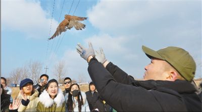 山东省青岛市城阳区野生动植物保护志愿者在白沙河入海口湿地,放归一只救助的国家二级重点保护动物红隼。 王海滨摄