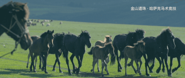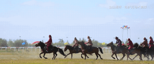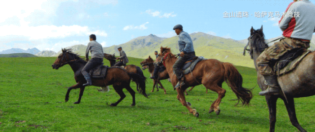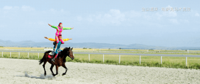 哈萨克族马上竞技,主要是指人与马之间的密切配合,在马行进、飞奔过程中展示出的各种马上技巧,可分为单项和多项两种。