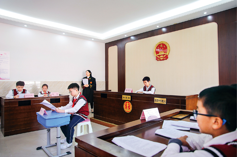 2020年10月30日,安徽省合肥市滨湖世纪社区在合肥师范附小三小开展“模拟法庭进校园”活动。图为当日拍摄的模拟法庭“庭审”现场。 新华社记者 曹力/摄