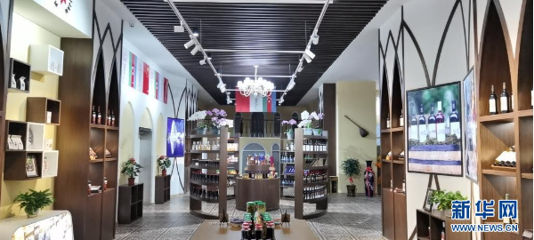 在位于上合示范区的阿塞拜疆国家品牌馆——青岛馆,从阿塞拜疆直接运来的葡萄酒、石榴汁、茶叶等各式产品整齐摆放在货架上供消费者挑选,负责人吴茜娱将几瓶葡萄酒用专门的包装打包,准备发货给北京的客户。